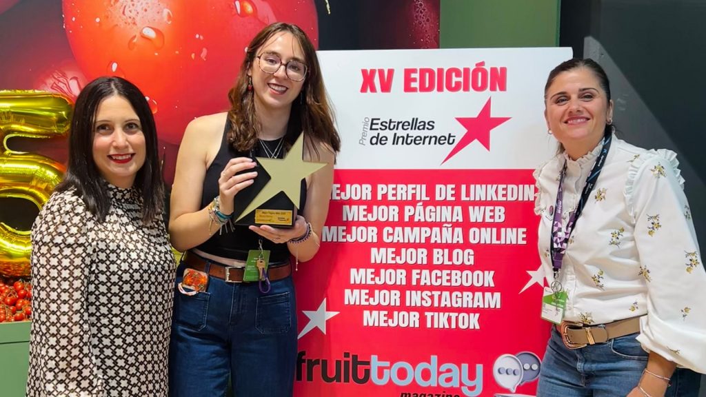 Pero no sólo recogimos este importante certificado y galardón, sino que también nuestro departamento de comunicación terminó una feria por todo lo alto, pues, por segundo año consecutivo, y gracias al trabajo de Microbio, recibieron el premio Estrellas de Internet por Mejor Página Web (muMU Berries), unos premios organizados por la revista hortofrutícola Fruit Today y la Asociación de Productores – Exportadores de Frutas y Hortalizas de la Región de Murcia, Proexport, reforzando la importancia de tener un buen equipo compenetrado donde la comunicación, el respeto y el esfuerzo grupal marquen el día a día.